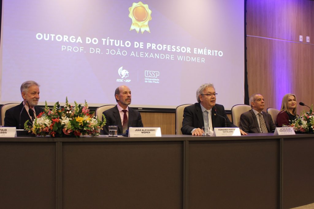 Em sessão solene promovida pela Egrégia Congregação da Escola de Engenharia de São Carlos (EESC) da Universidade de São Paulo, no último dia 5 de setembro, o professor João Alexandre Widmer foi outorgado com o título de professor emérito, em reconhecimento por toda a sua trajetória profissional dedicada às atividades de ensino, pesquisa e extensão, bem como pela seriedade e competência que marcaram sua jornada acadêmica. O evento aconteceu no Anfiteatro de Convenções Jorge Caron da EESC.